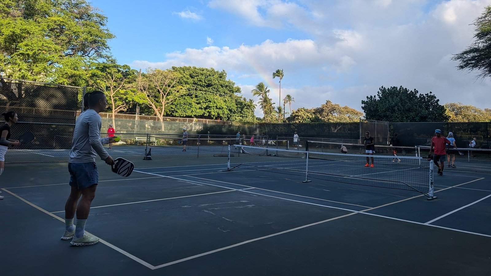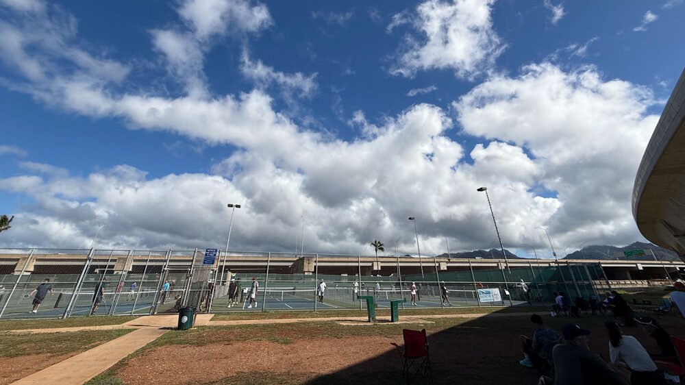 There’s a parking lot available onsite for those who have rented a car but since it’s near Waikiki, you might be able to walk over depending on your hotel location. Since this court is one of the closest to Waikiki they’ll have more transient crowds. There are no set “busy” times so play time can vary from really busy, to not busy at all.